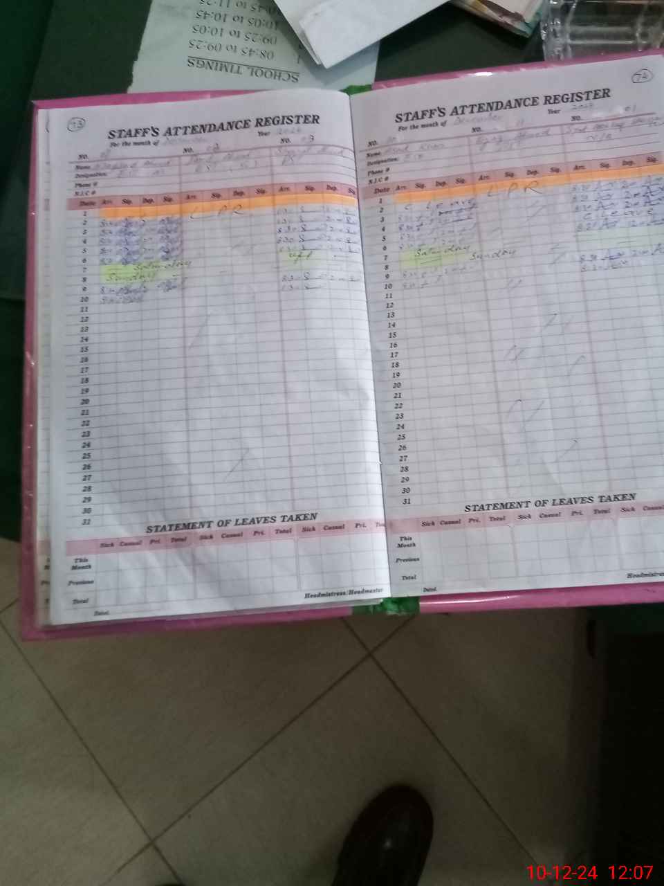 | CNIC | Full Name | Designation | R/C | Absence During Last Calender Month |