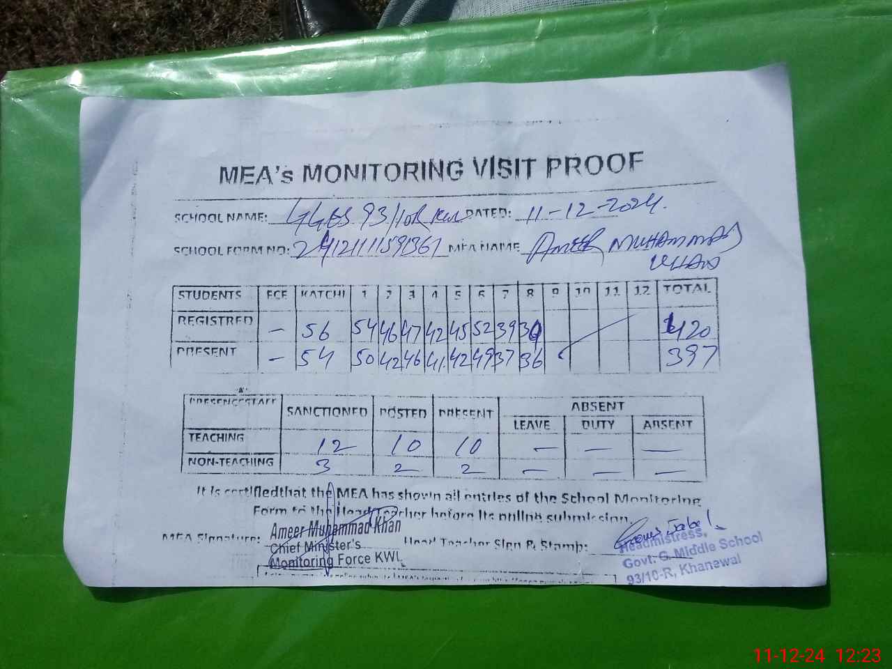 | EMIS Code: 36420101 | Name of School: GGES 93/10-R, KHANEWAL | |||