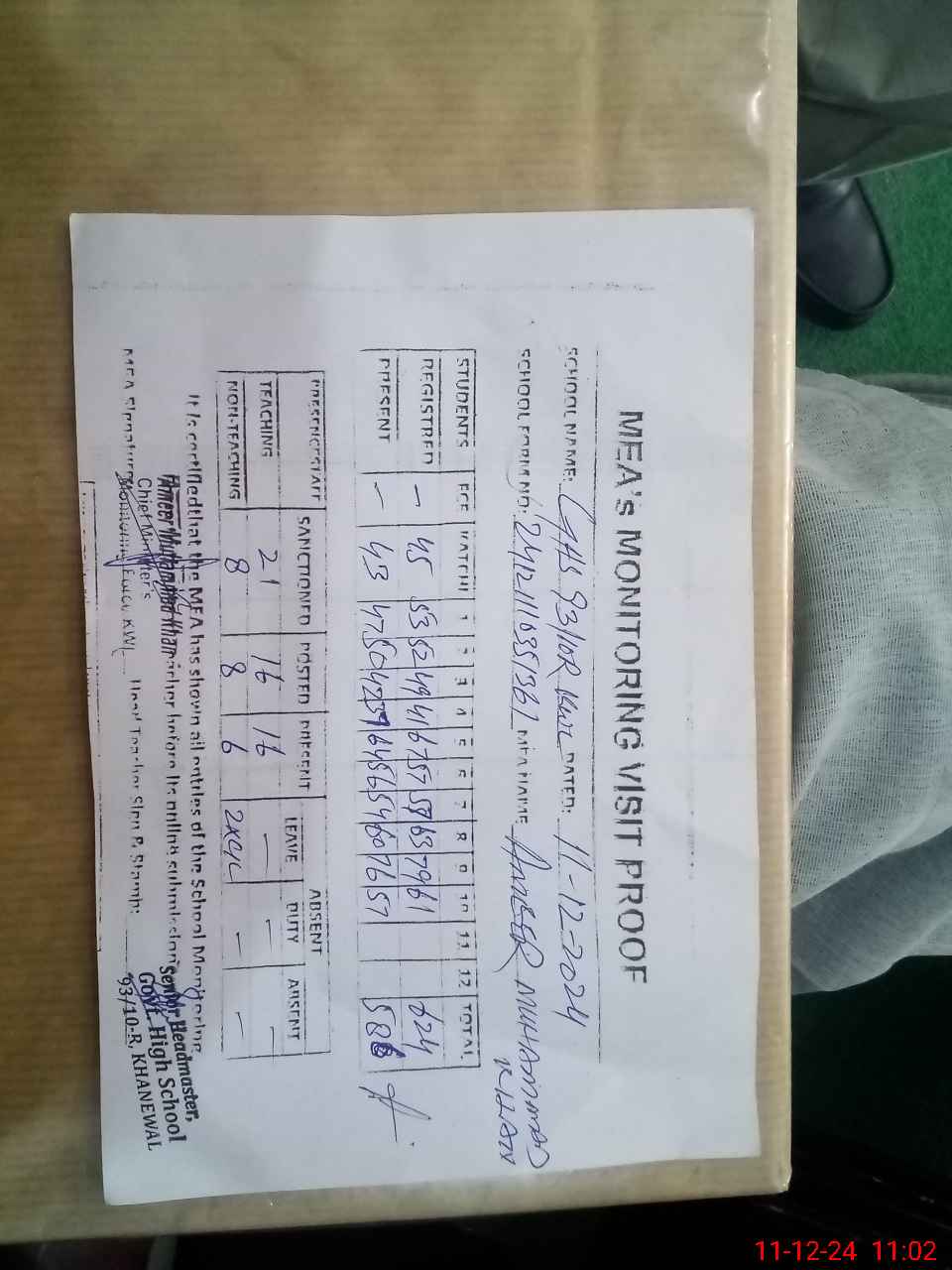 | EMIS Code: 36420009 | Name of School: GHS 93/10-R, KHANEWAL | |||