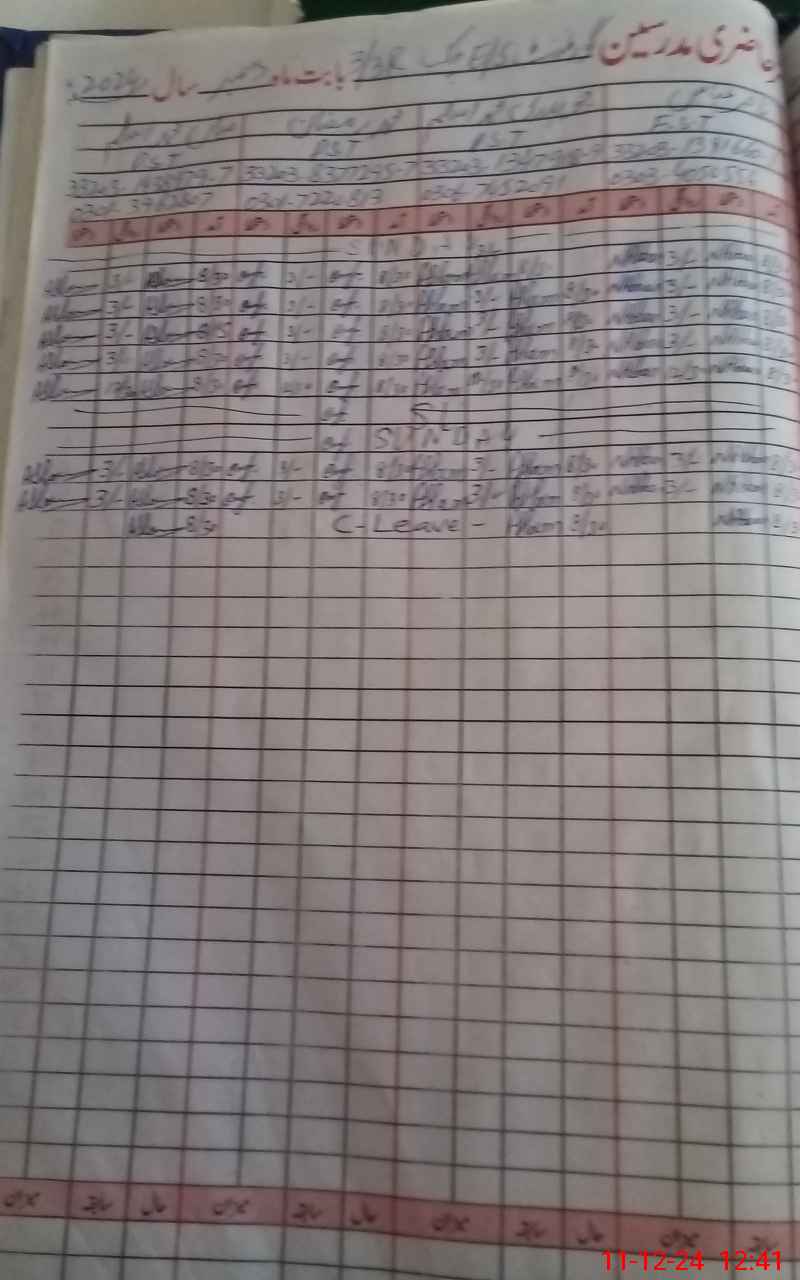 | CNIC | Full Name | Designation | R/C | Absence During Last Calender Month |