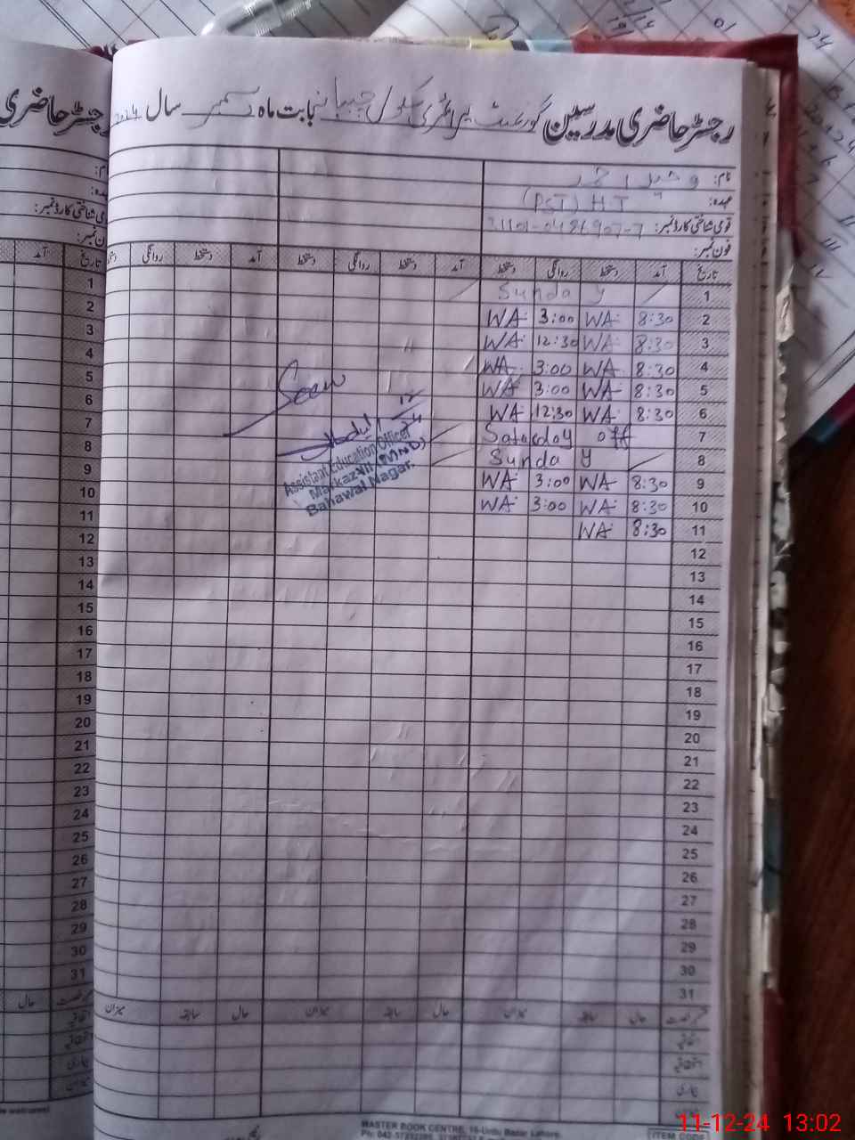 | Name: WA**** AH**** Designation: (School Headmaster's/Headmistress's) PST Phone/Cell Number: 03**** |