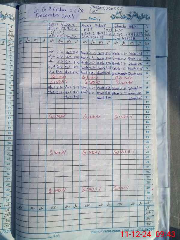 | EMIS Code: 31320555 | Name of School: GGPS CHAK NO 23/A | |||