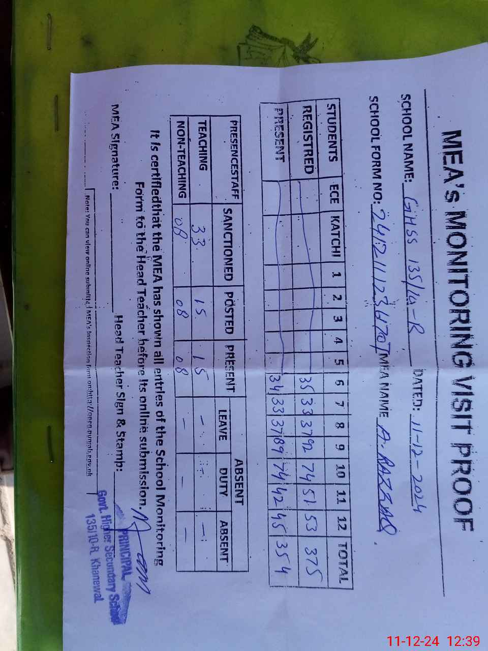 | EMIS Code: 36440002 | Name of School: GHSS 135/10-R, JAHANIAN | |||