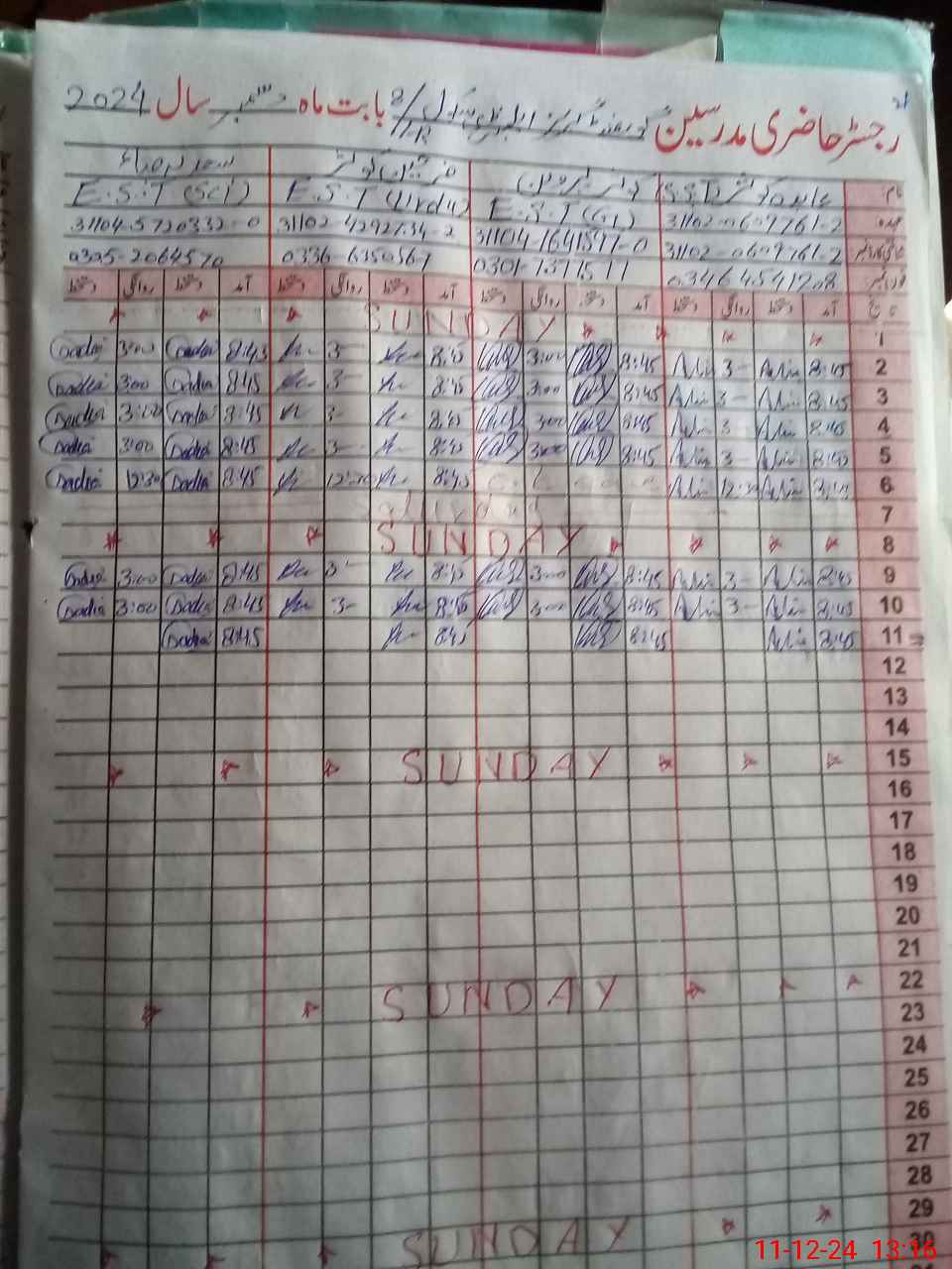 | CNIC | Full Name | Designation | R/C | Absence During Last Calender Month |