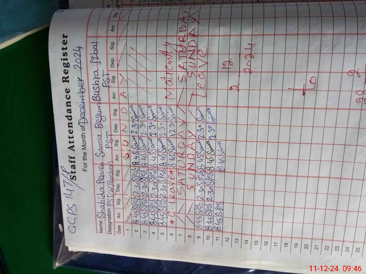 | 31**** | Bu**** Iq**** | PST | Regular | 3 | 0 | 0 | 0 | 0 | 0 | 0 | 0 | 3 | Maternity |