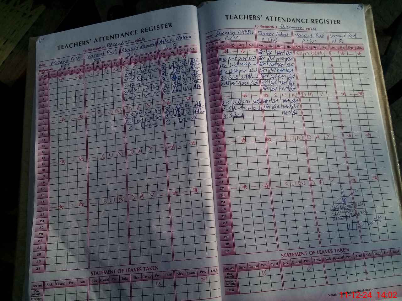 | 36**** | Ni**** Ba**** | Contract | 2 | 0 | 0 | 0 | 0 | 0 | 0 | 0 | 2 | Absent (Un-Authorized) | |