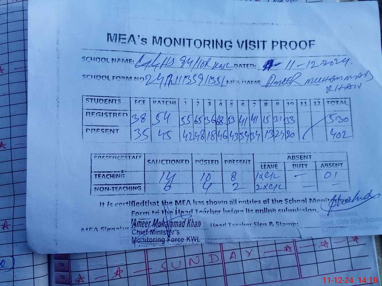 | EMIS Code: 36420098 | Name of School: GGHS 94/10-R, KHANEWAL | |||