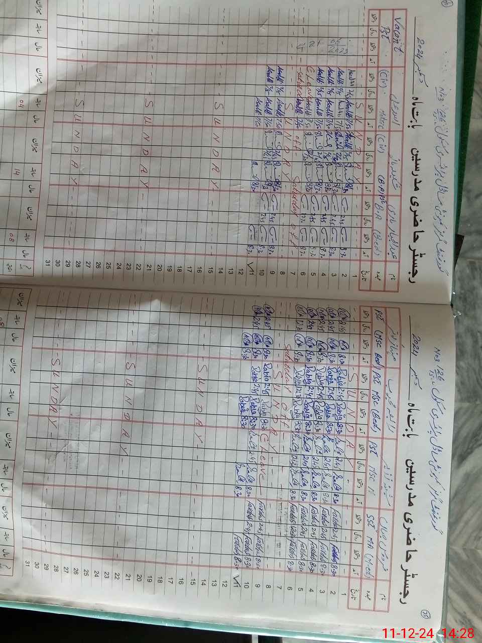 | CNIC | Full Name | Designation | R/C | Absence During Last Calender Month |
