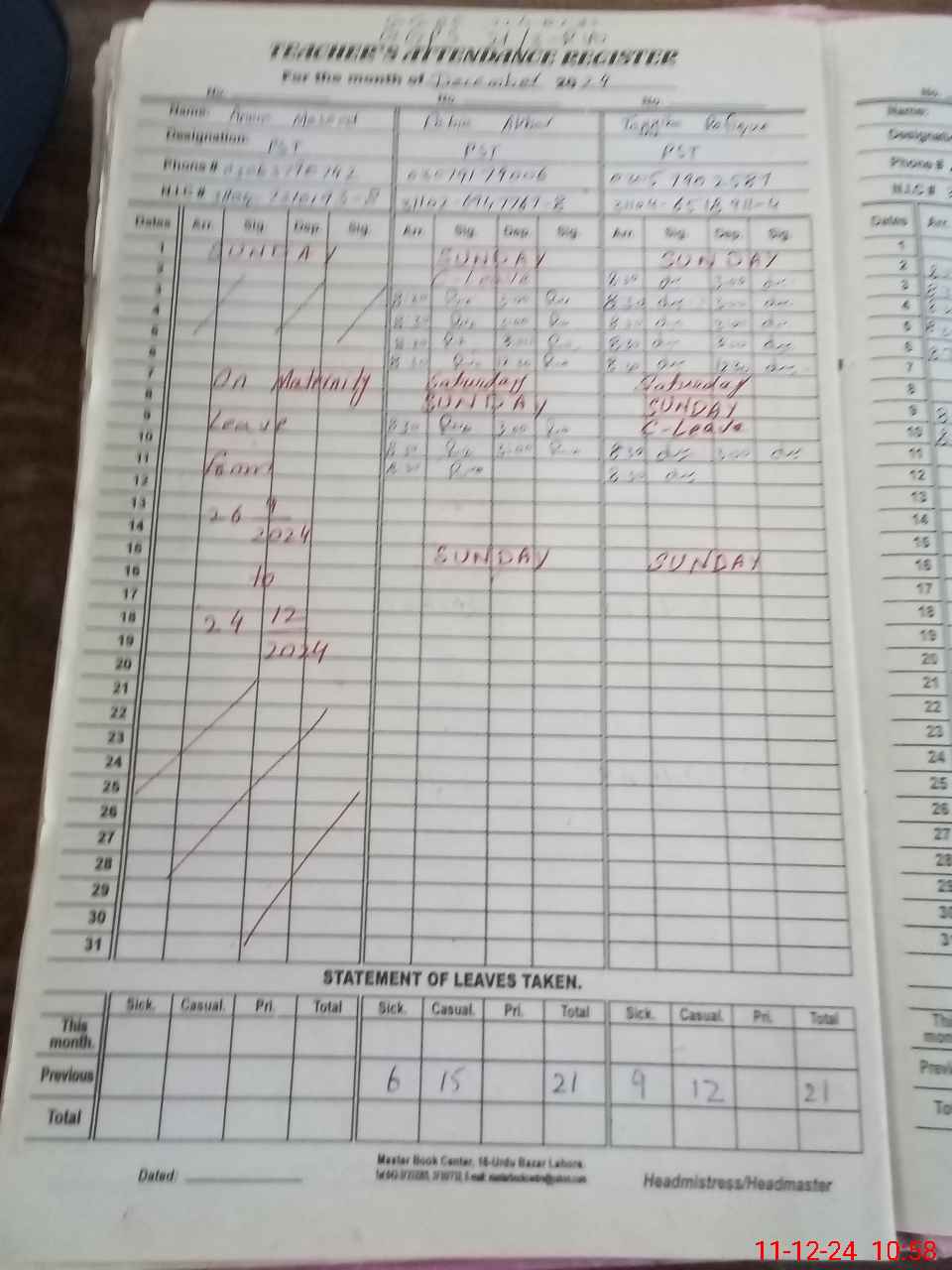 | 31**** | An**** Ma**** | PST | Regular | 30 | 0 | 0 | 30 | 0 | 0 | 0 | 0 | 0 | Maternity |