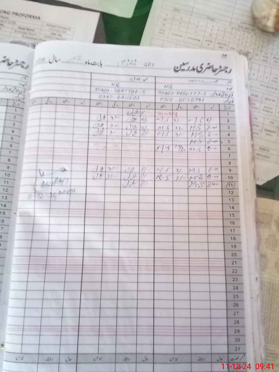 | CNIC | Full Name | Designation | R/C | Absence During Last Calender Month |