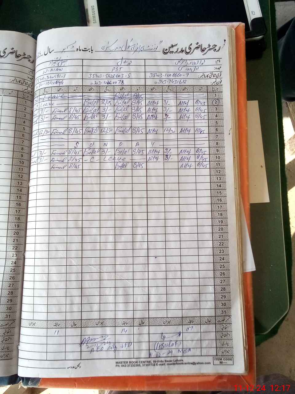 | Name: AB**** RA**** Designation: (School Headmaster's/Headmistress's) PST Phone/Cell Number: 03**** |