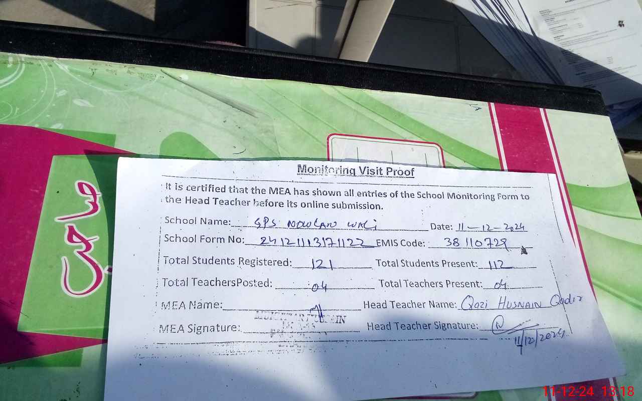 | EMIS Code: 38110729 | Name of School: GPS NOWLAN WALI | |||