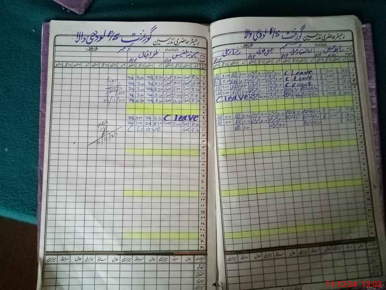 | CNIC | Full Name | Designation | R/C | Absence During Last Calender Month |