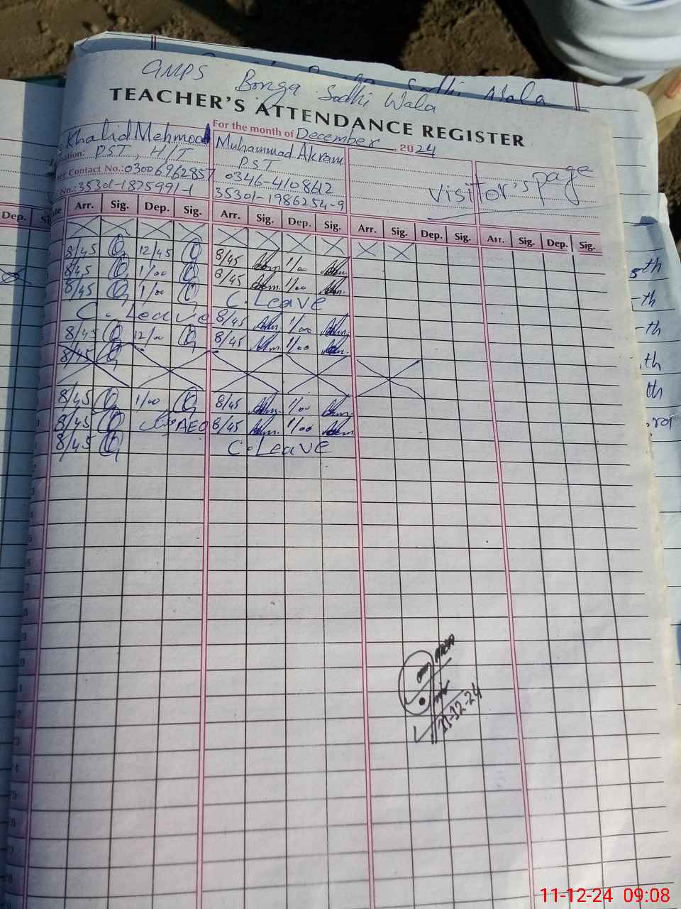| Name: KH**** MA**** Designation: (School Headmaster's/Headmistress's) PST Phone/Cell Number: 03**** |