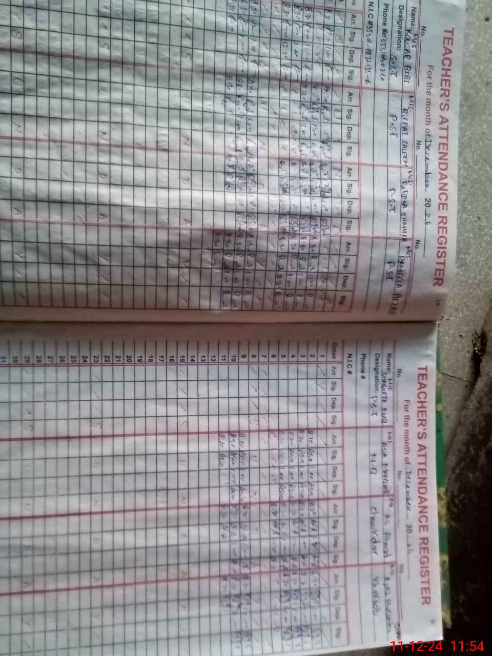 | CNIC | Full Name | Designation | R/C | Absence During Last Calender Month |