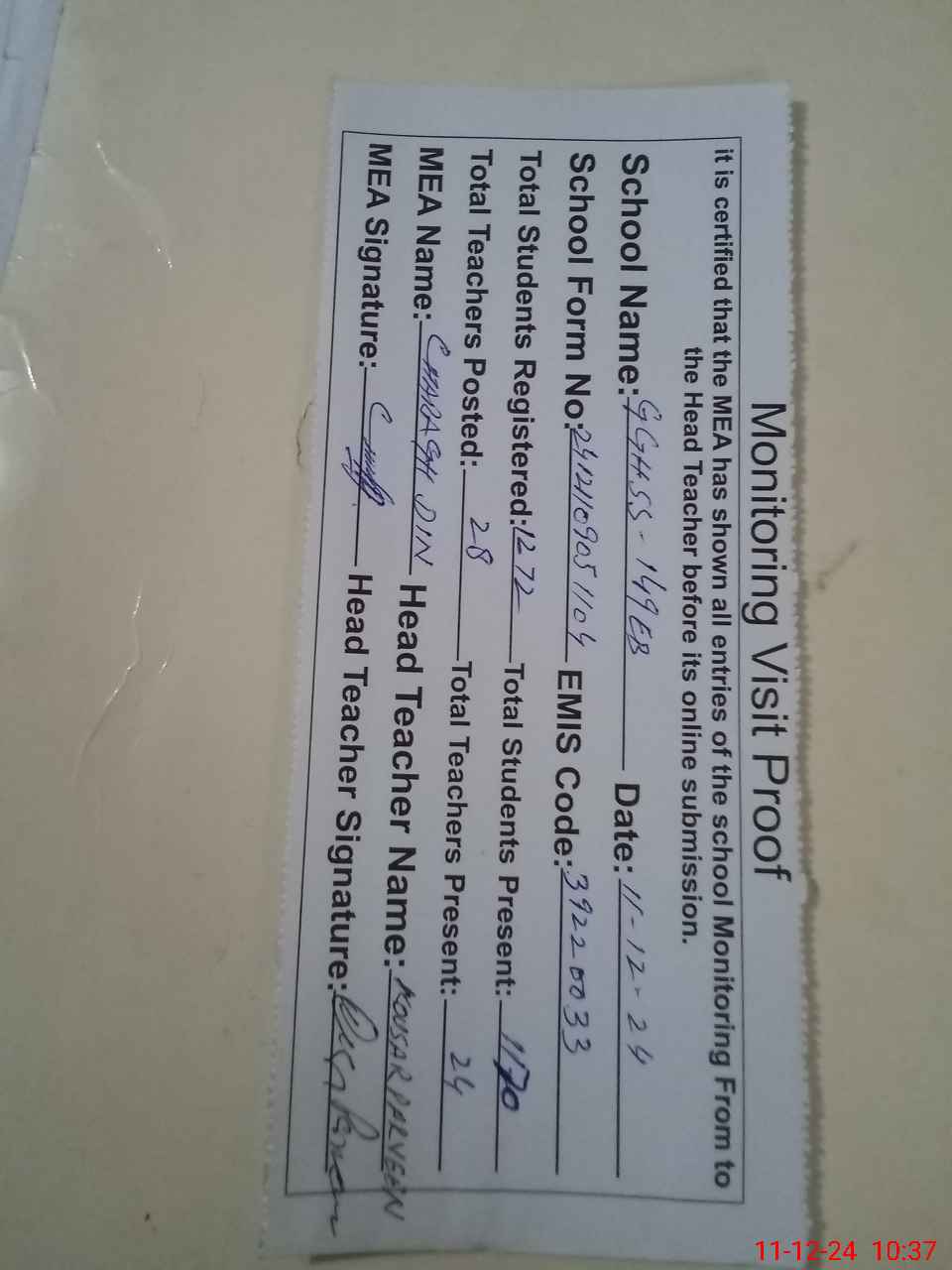 | EMIS Code: 39220033 | Name of School: GGHSS 149 EB ARIFWALA | |||