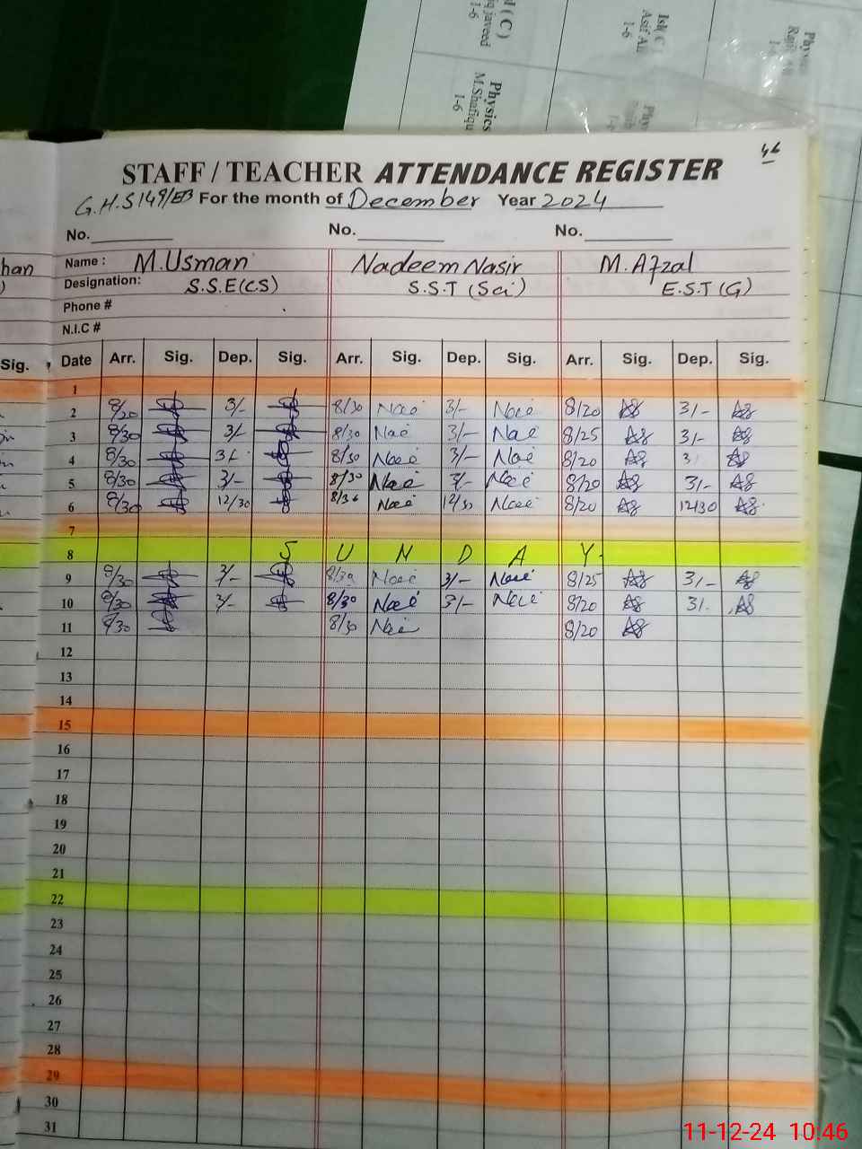 | CNIC | Full Name | Designation | R/C | Absence During Last Calender Month |