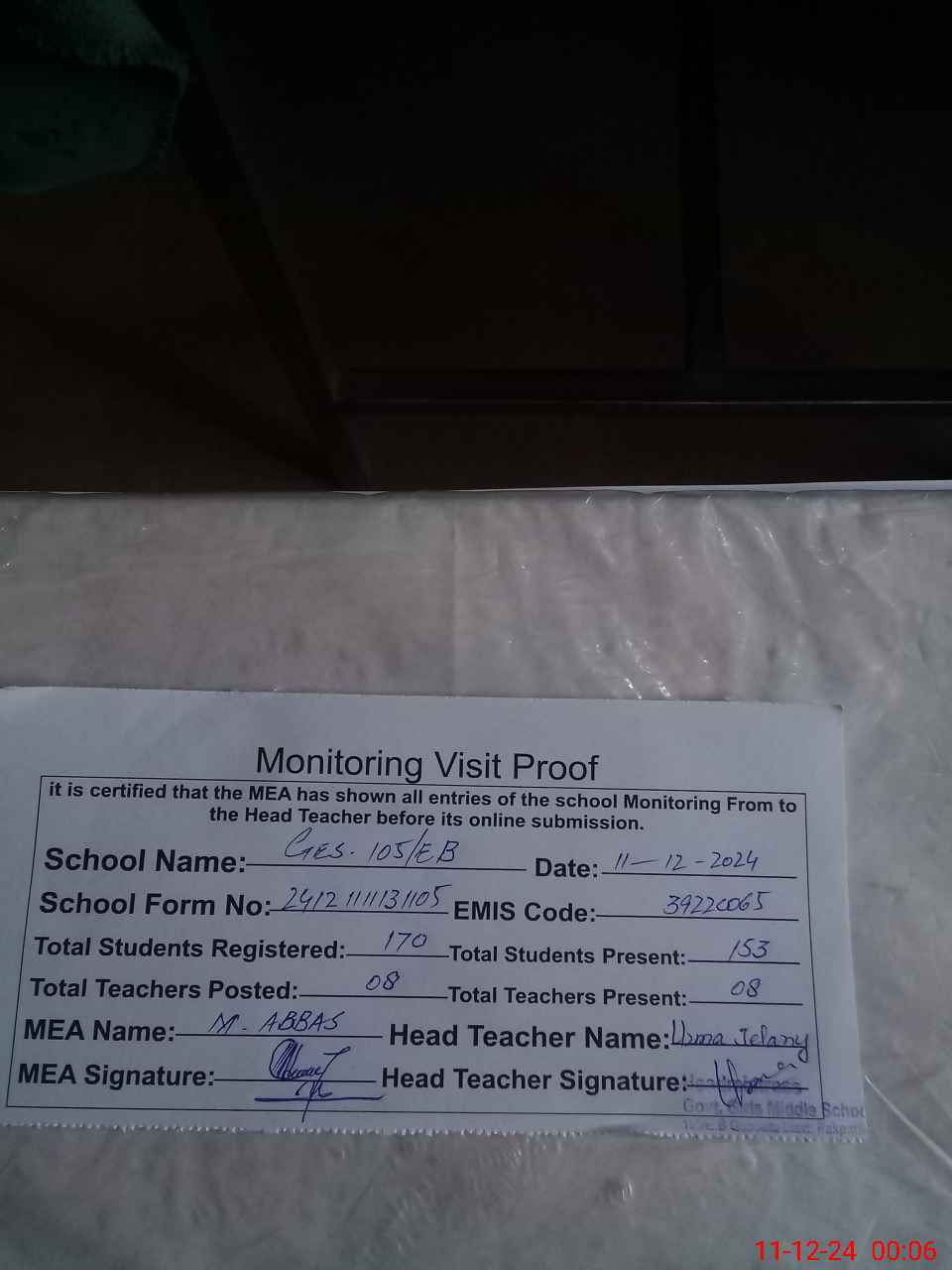 | EMIS Code: 39220065 | Name of School: GGES 105-EB | |||