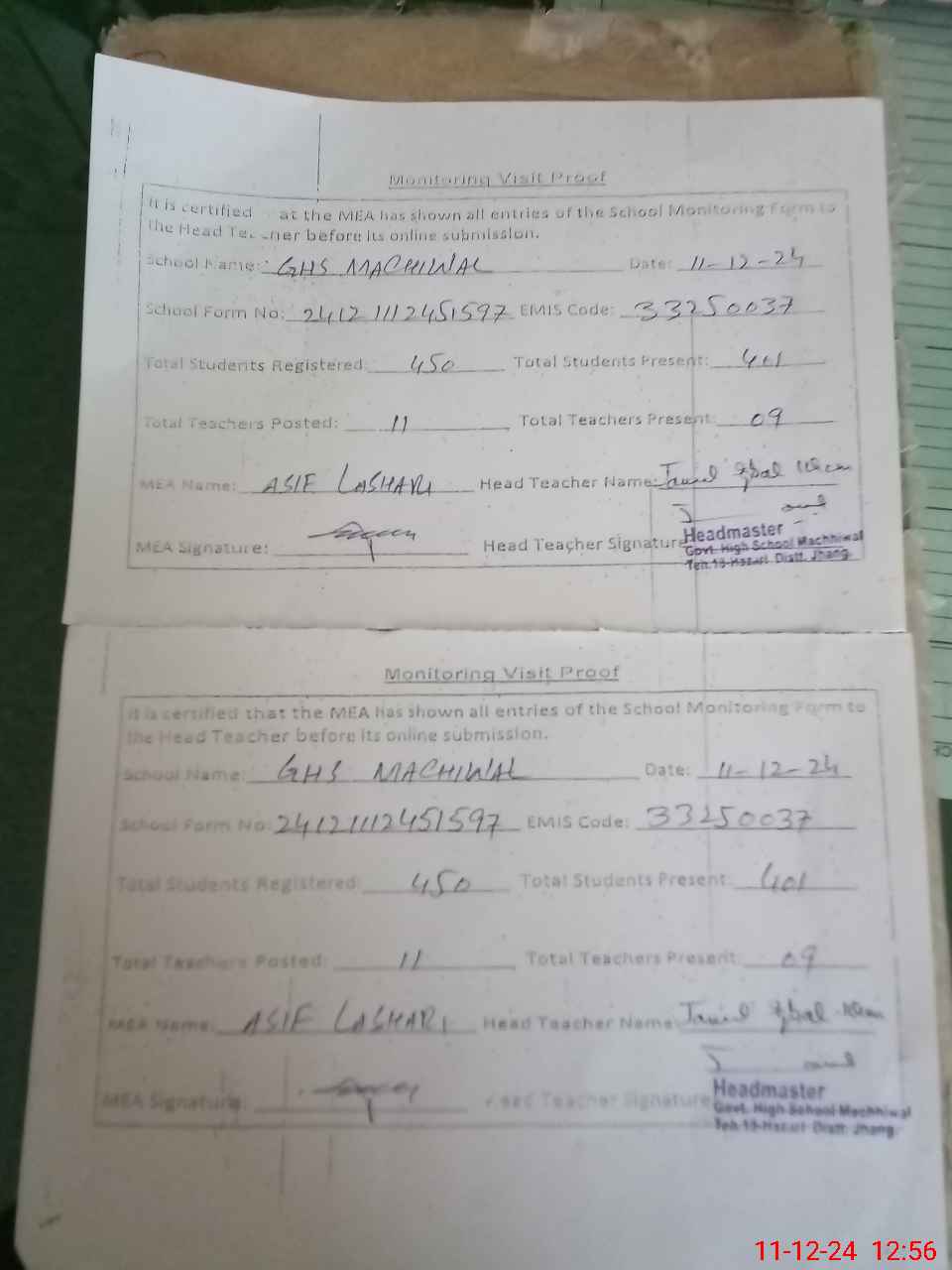 | EMIS Code: 33250037 | Name of School: GHS MACHI WAL | |||