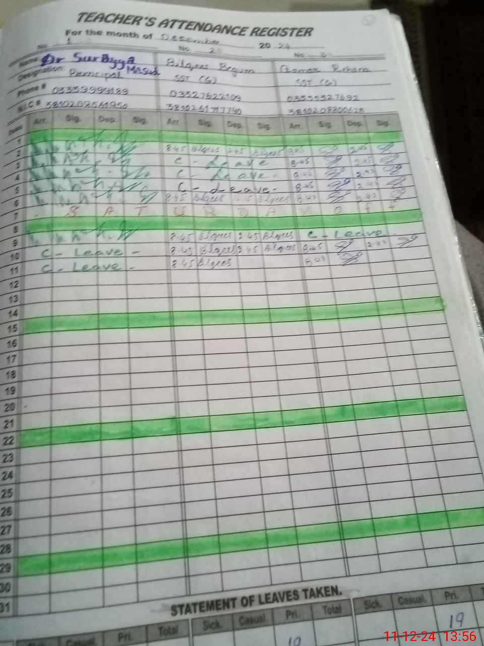 | 38**** | Su**** Pa**** | PRINCIPAL | Regular | 0 | 0 | 0 | 0 | 0 | 0 | 0 | 0 | 0 | Casual |