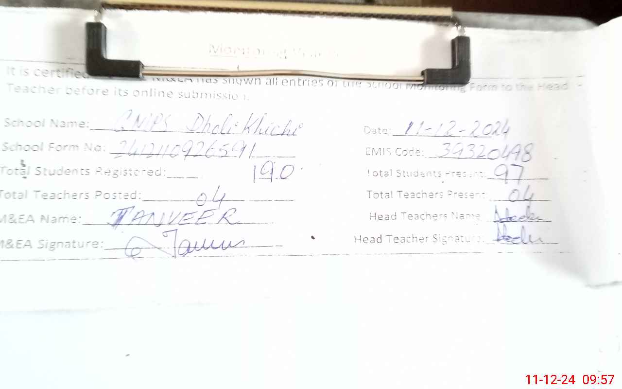 | EMIS Code: 39320498 | Name of School: GMPS DHOLI KHICHI | |||