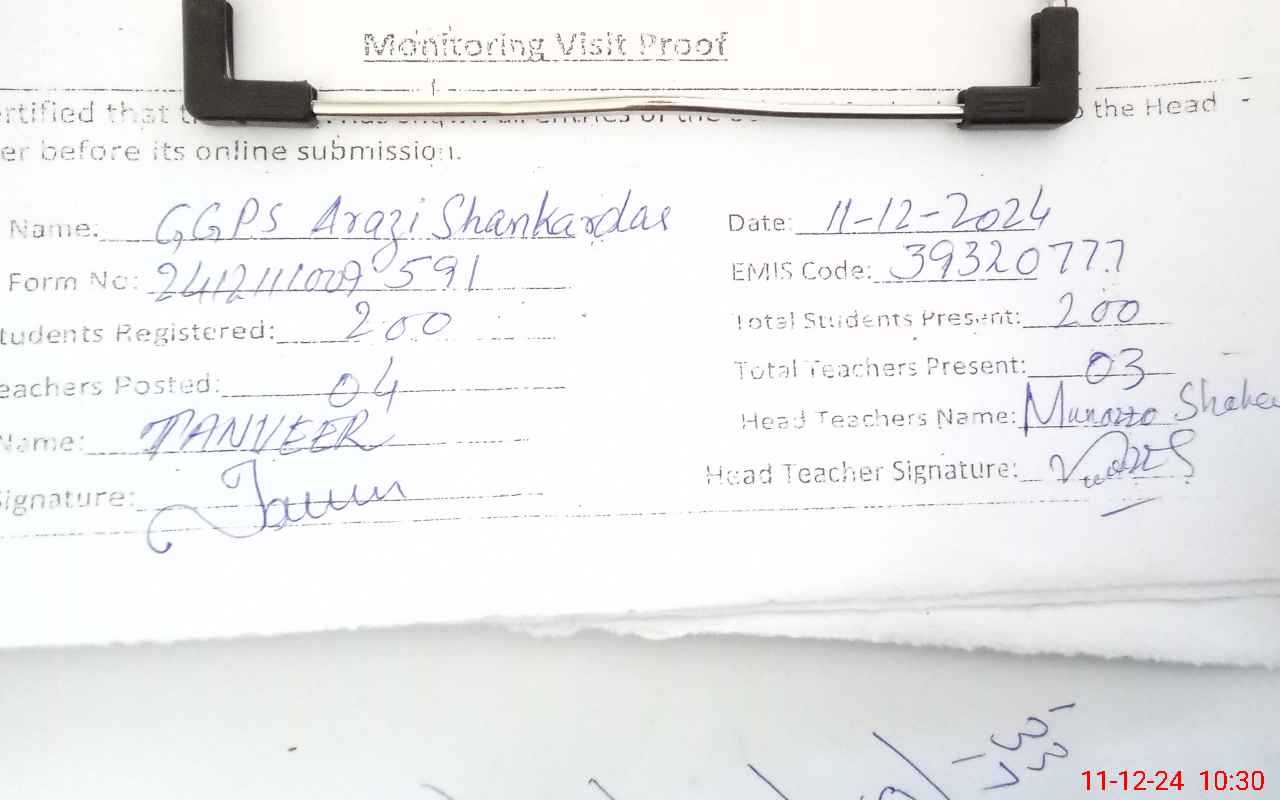 | EMIS Code: 39320777 | Name of School: GGPS ARAZI SHANKAR DAS | |||