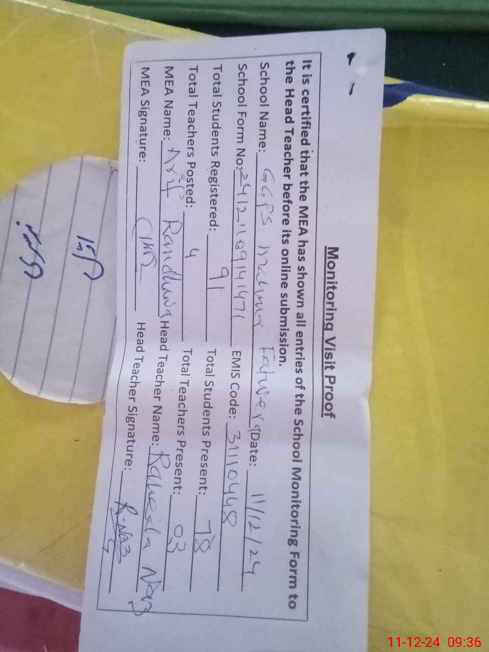 | Certified that this School was Inspected by the Undersigned MEA/DMO Today and the Information Stated Above is as Per Record. | |||||