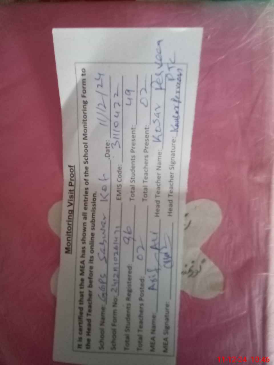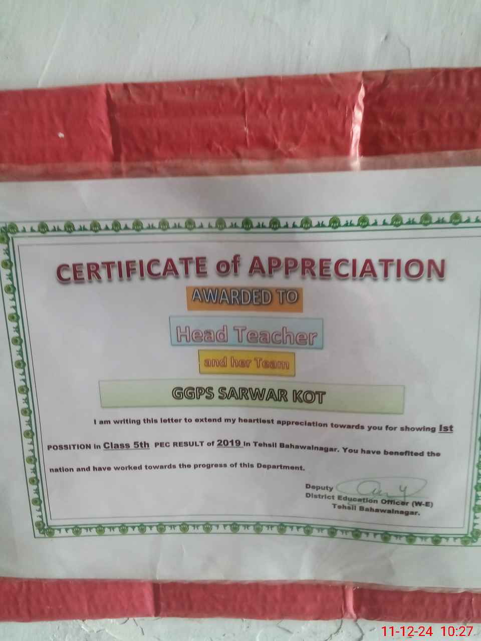 | EMIS Code: 31110472 | Name of School: GGPS SARWER KOT | |||