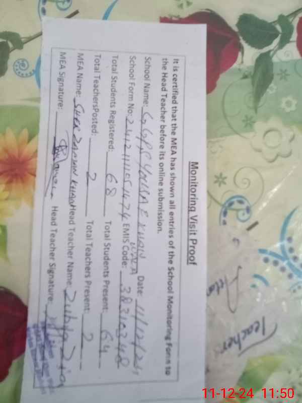 | EMIS Code: 38310348 | Name of School: GGPS YOUSUF KHAN WALA | |||