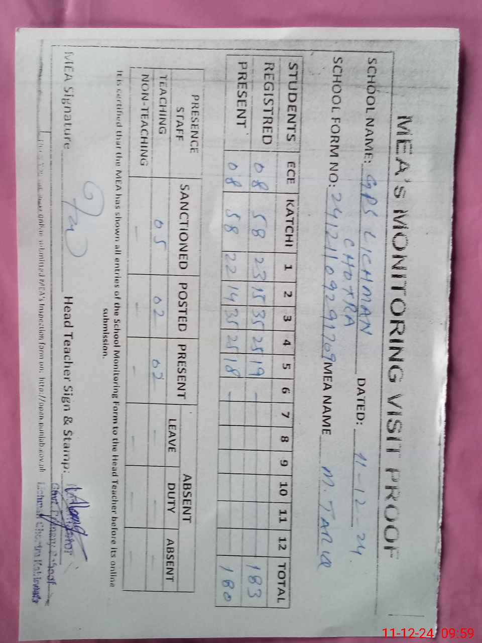 | EMIS Code: 36410546 | Name of School: GPS LICHMAN CHOTRA, SARAI SIDHU | |||