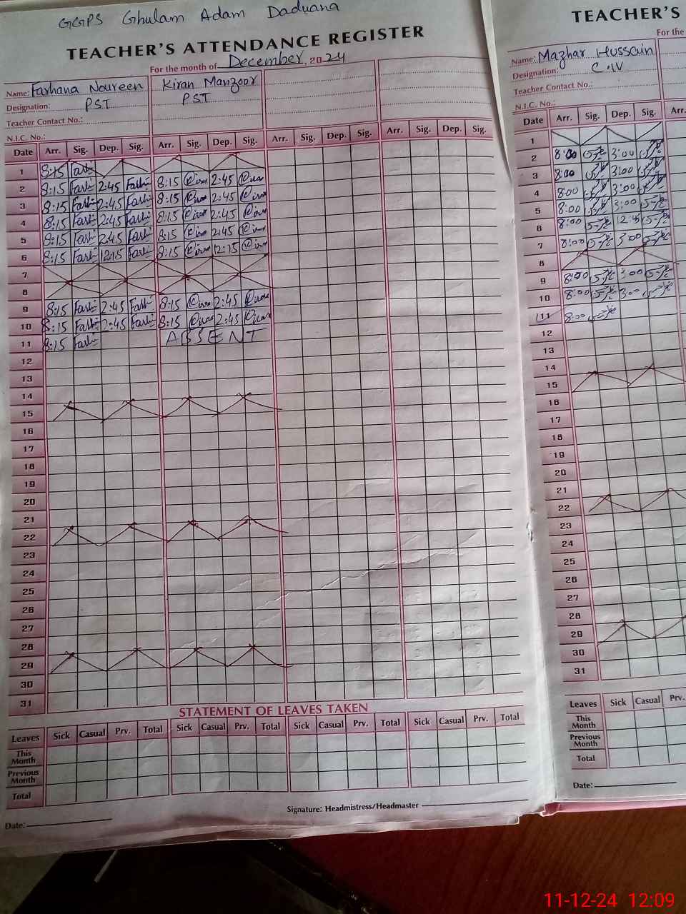 | 36**** | Ki**** Ma**** | 1 | 1 | 0 | 0 | 0 | 0 | 0 | 0 | 0 | 0 | 0 | Absent (Un-Authorized) |