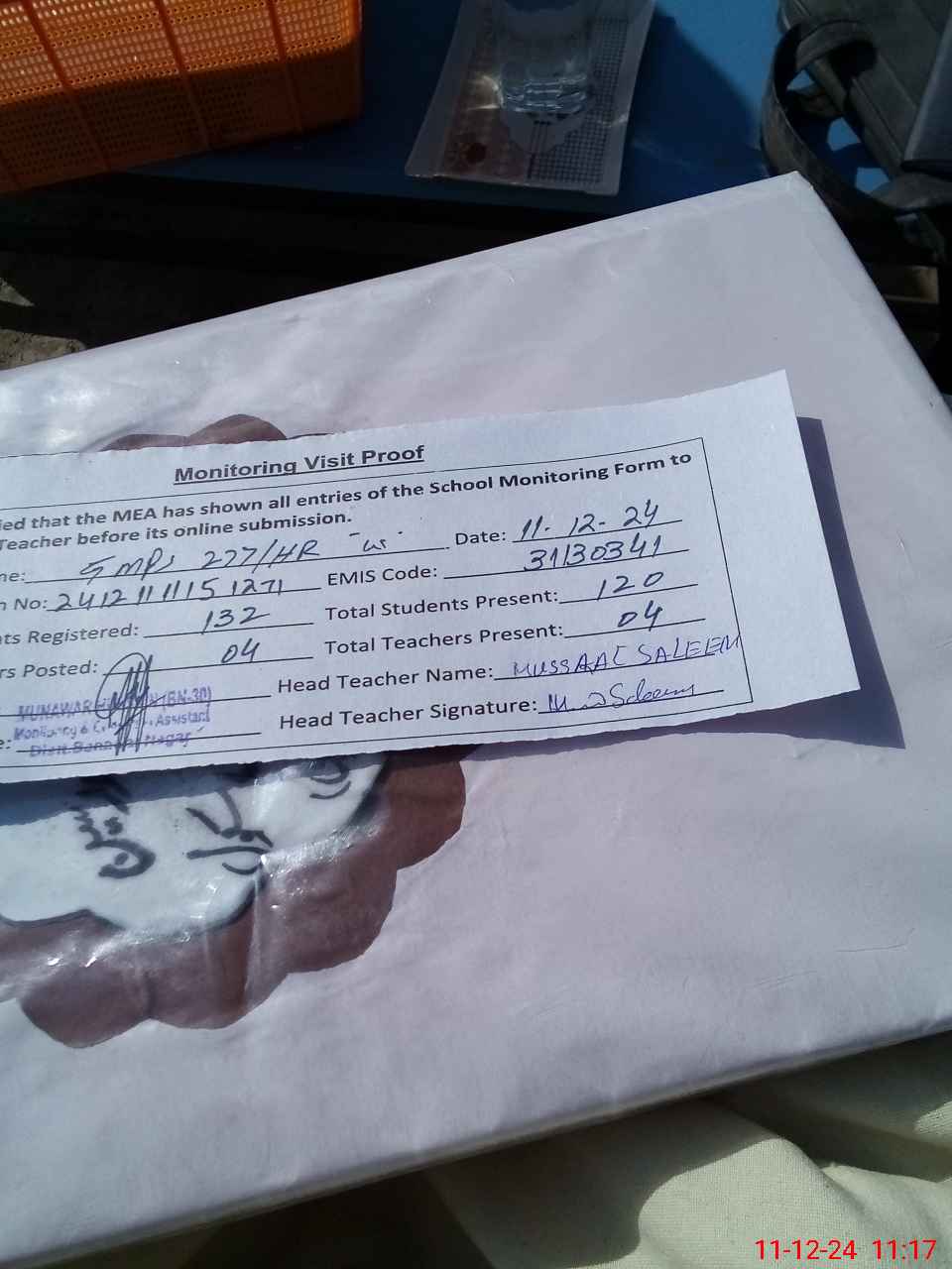 | EMIS Code: 31130341 | Name of School: GMPS CHAK NO 277 HR W | |||