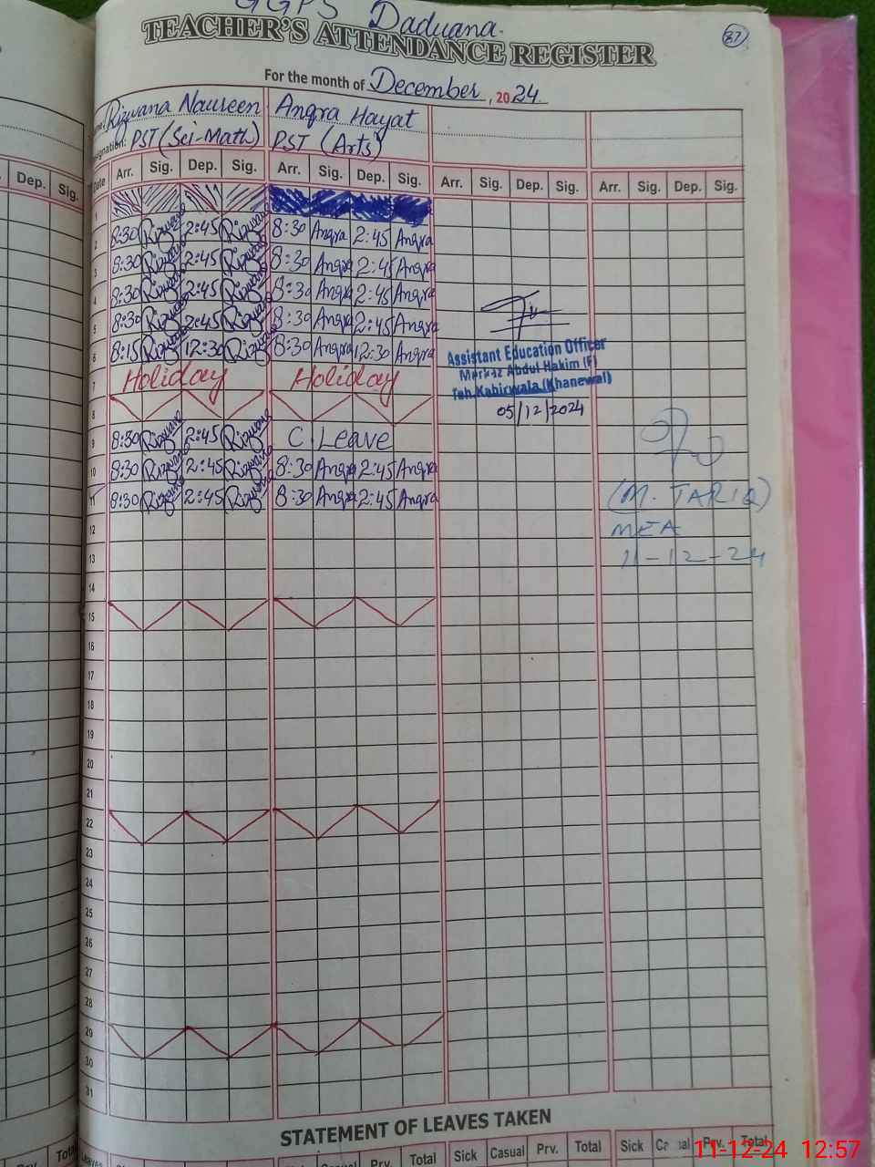 | Name: Ri**** No**** Designation: (School Headmaster's/Headmistress's) PST Phone/Cell Number: 03**** |