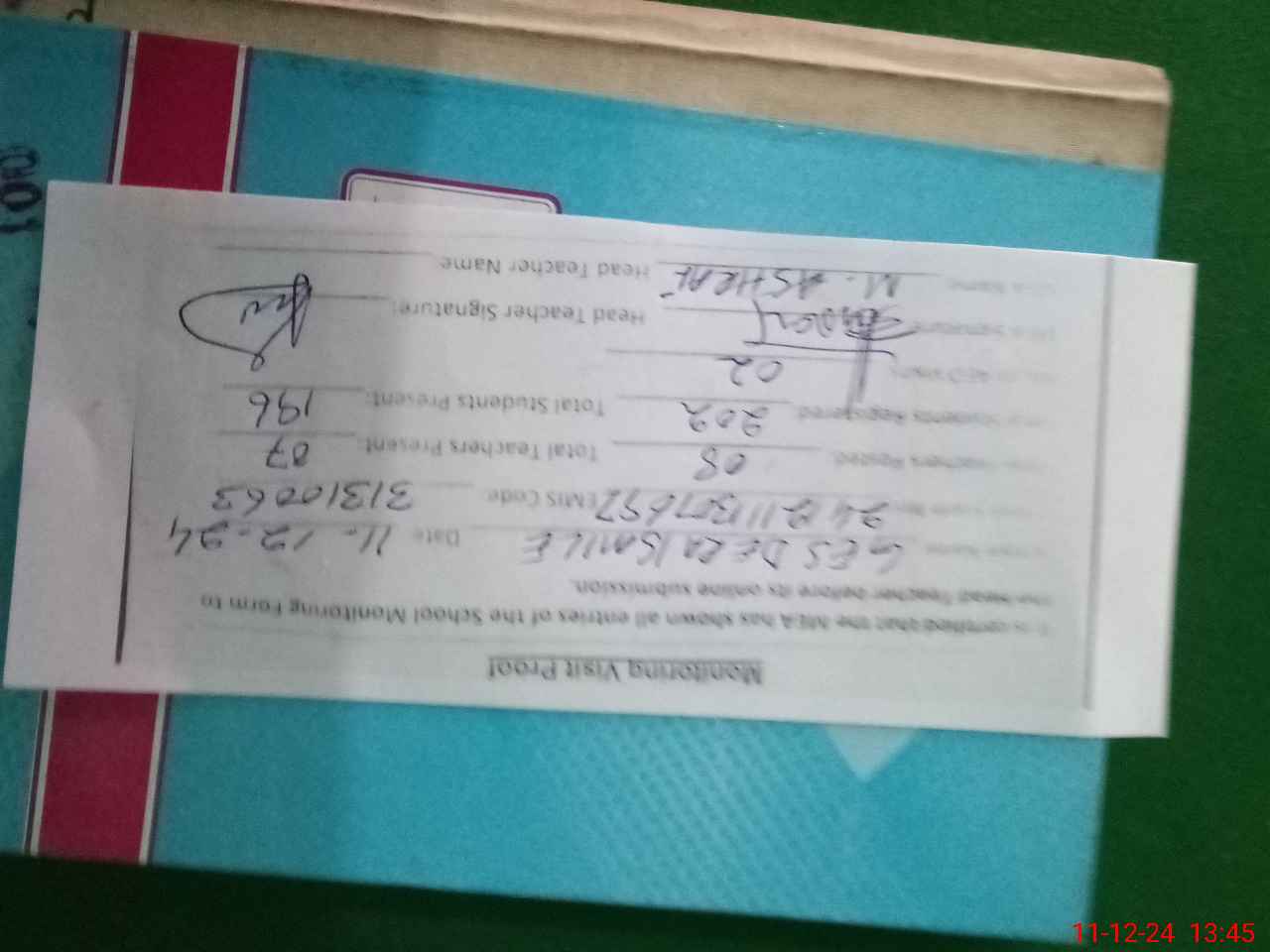 | Remarks (Use Separate Page if Required): ATTENDENCE NOT MARKED ON SIS ENROLMENT OF STUDENTS TAKEN FROM ATTENDENCE REGISTERS HEAD COUNT NOT CARRIED OUT DUE TO DECEMBER TEST 2ND TERM | |||||