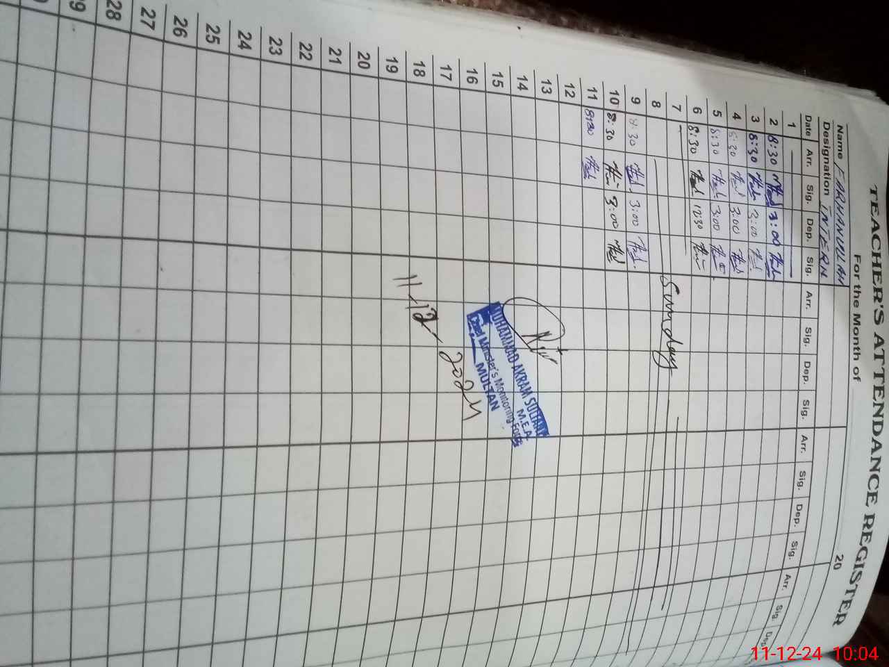 | Name: Ma**** Ab**** Designation: (School Headmaster's/Headmistress's) Ic Principle Phone/Cell Number: 03**** |