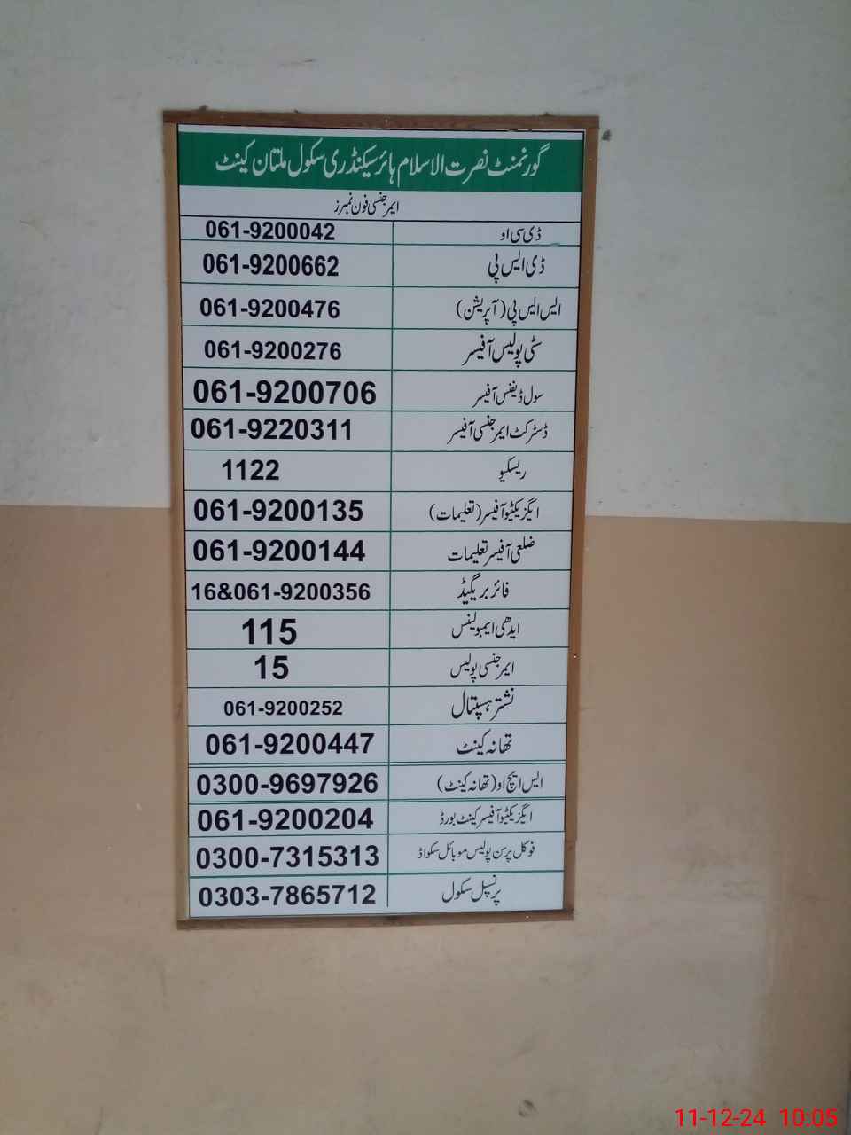 | EMIS Code: 36110008 | Name of School: GHSS NUSRAT-UL-ISLAM NUSRAT ROAD OPP. MISSION HOSPITAL MULTAN | |||