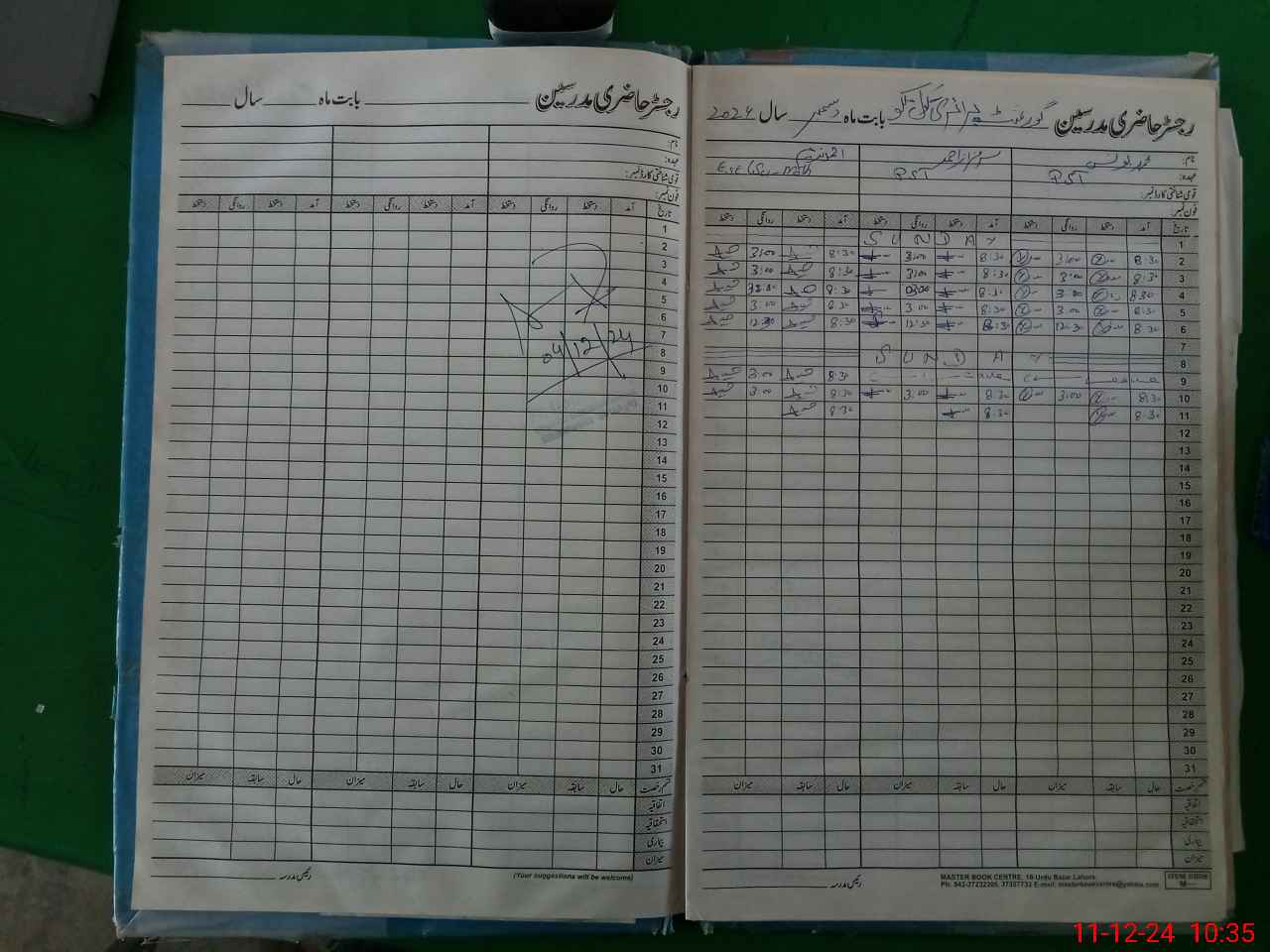 | CNIC | Full Name | Designation | R/C | Absence During Last Calender Month |