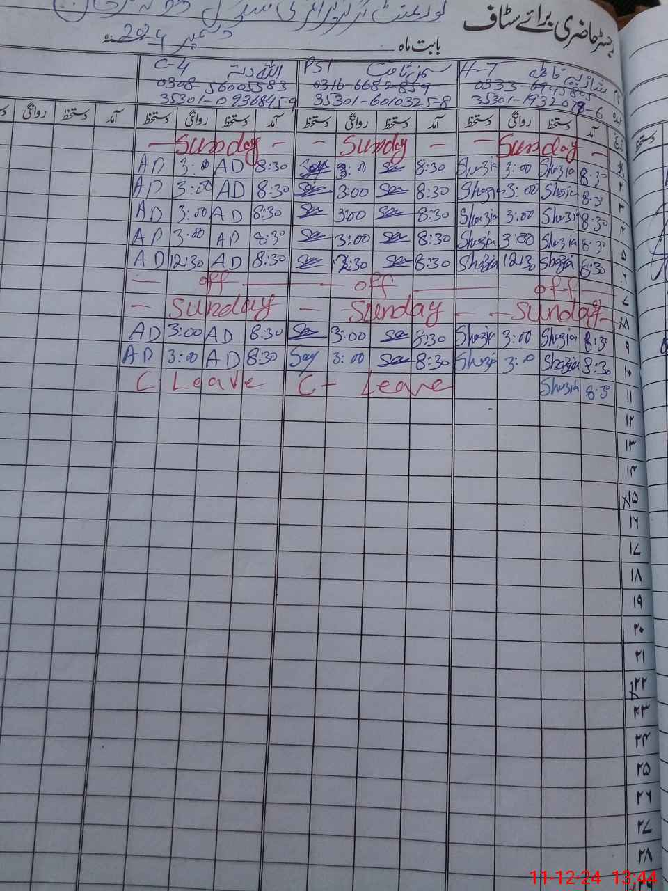 | 35**** | Sa**** Sa**** | PST | Regular | 0 | 0 | 0 | 0 | 0 | 0 | 0 | 0 | 0 | Casual |