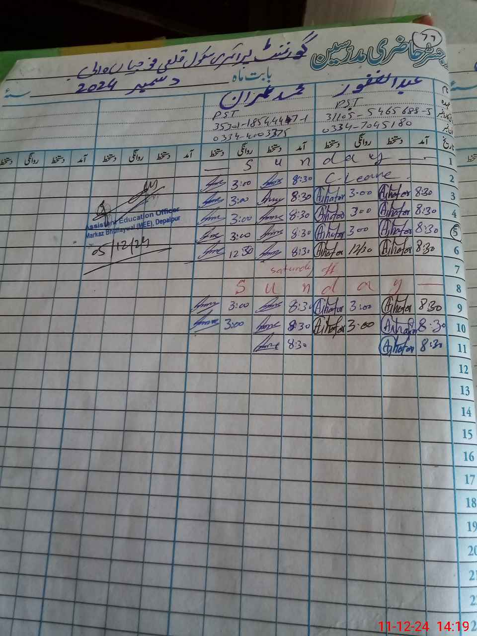 | Name: Ab**** Gh**** Designation: (School Headmaster's/Headmistress's) PST Phone/Cell Number: 03**** |
