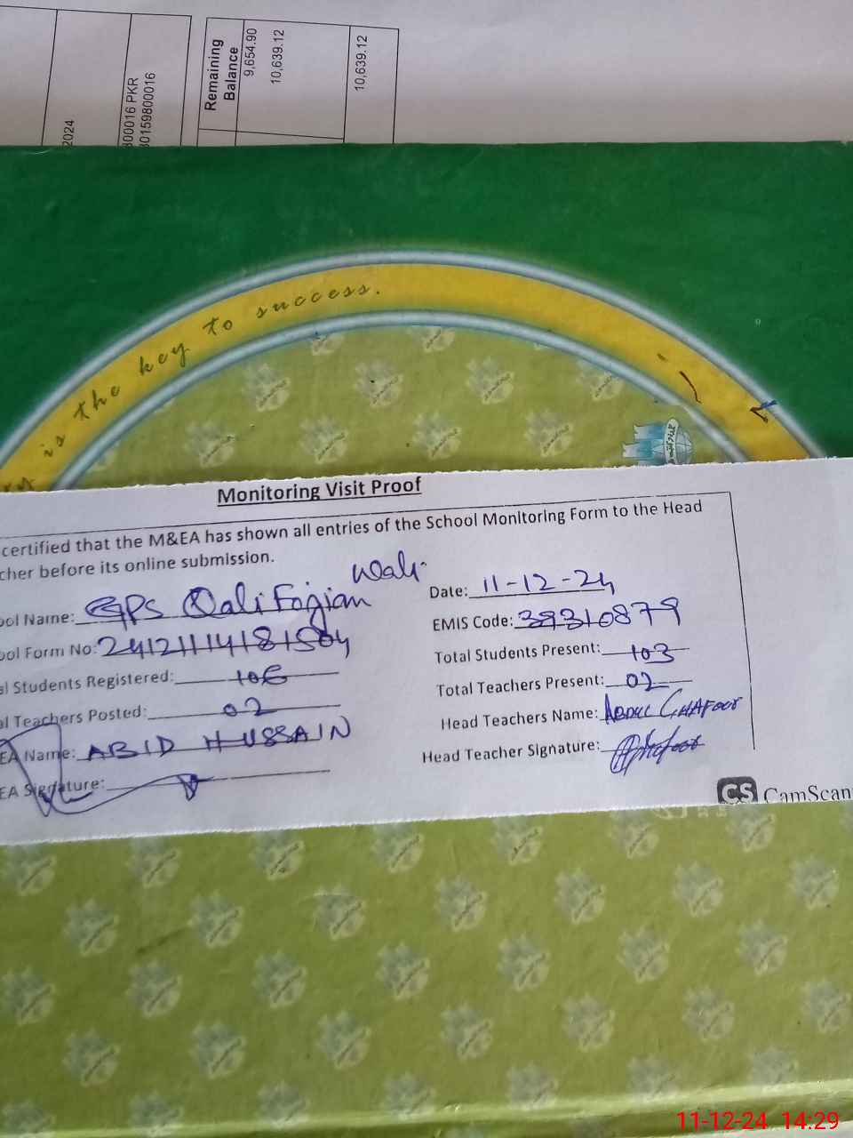 | EMIS Code: 39310879 | Name of School: GPS QALI FOJIAN WALI | |||