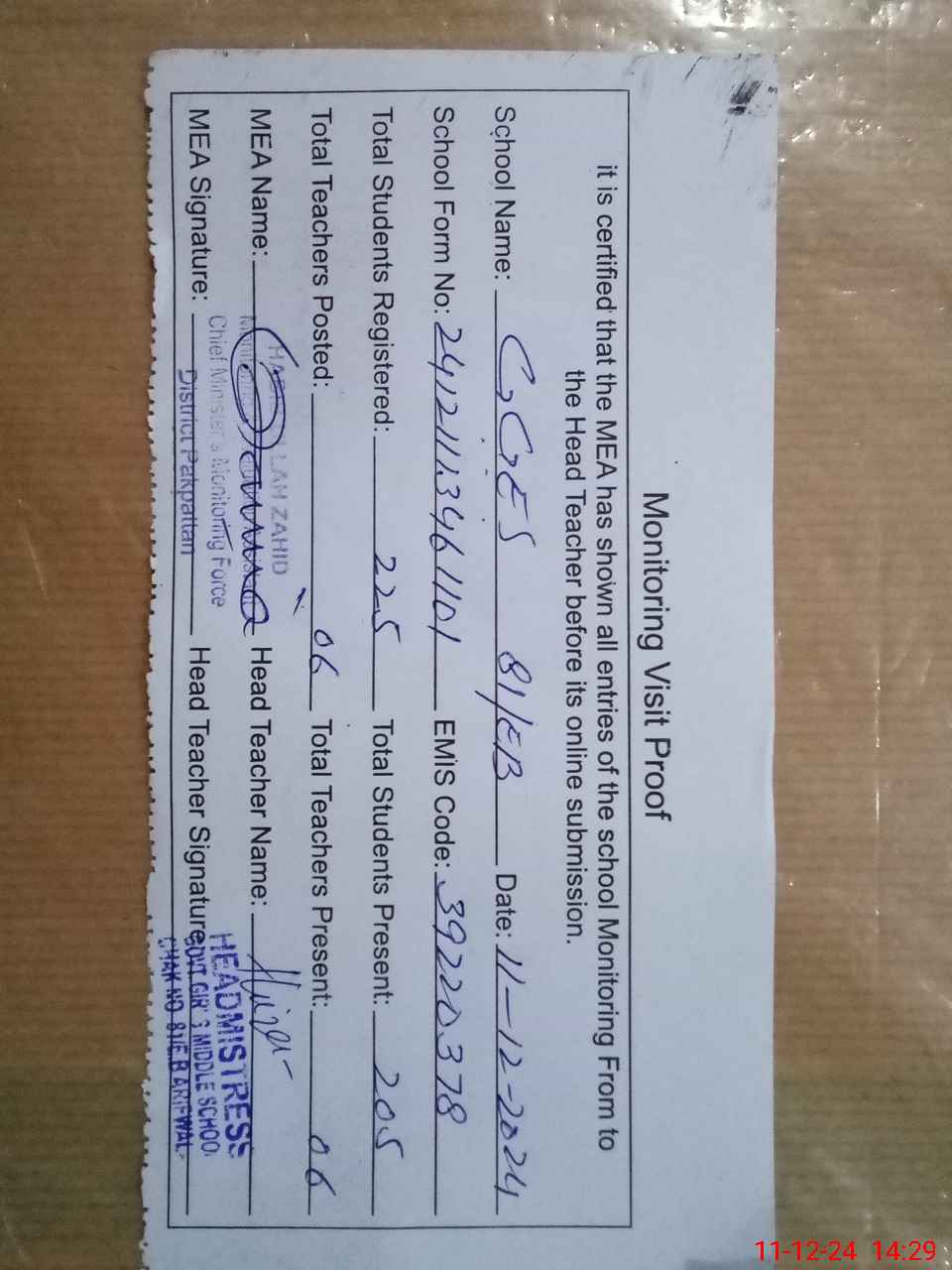 | Certified that this School was Inspected by the Undersigned MEA/DMO Today and the Information Stated Above is as Per Record. | |||||