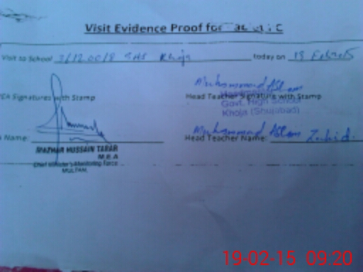| EMIS Code: 36120018 | Name of School: GHS KHOJA P.O. KHOJA TEH. SHUJABAD DISTRICT MULTAN | |||