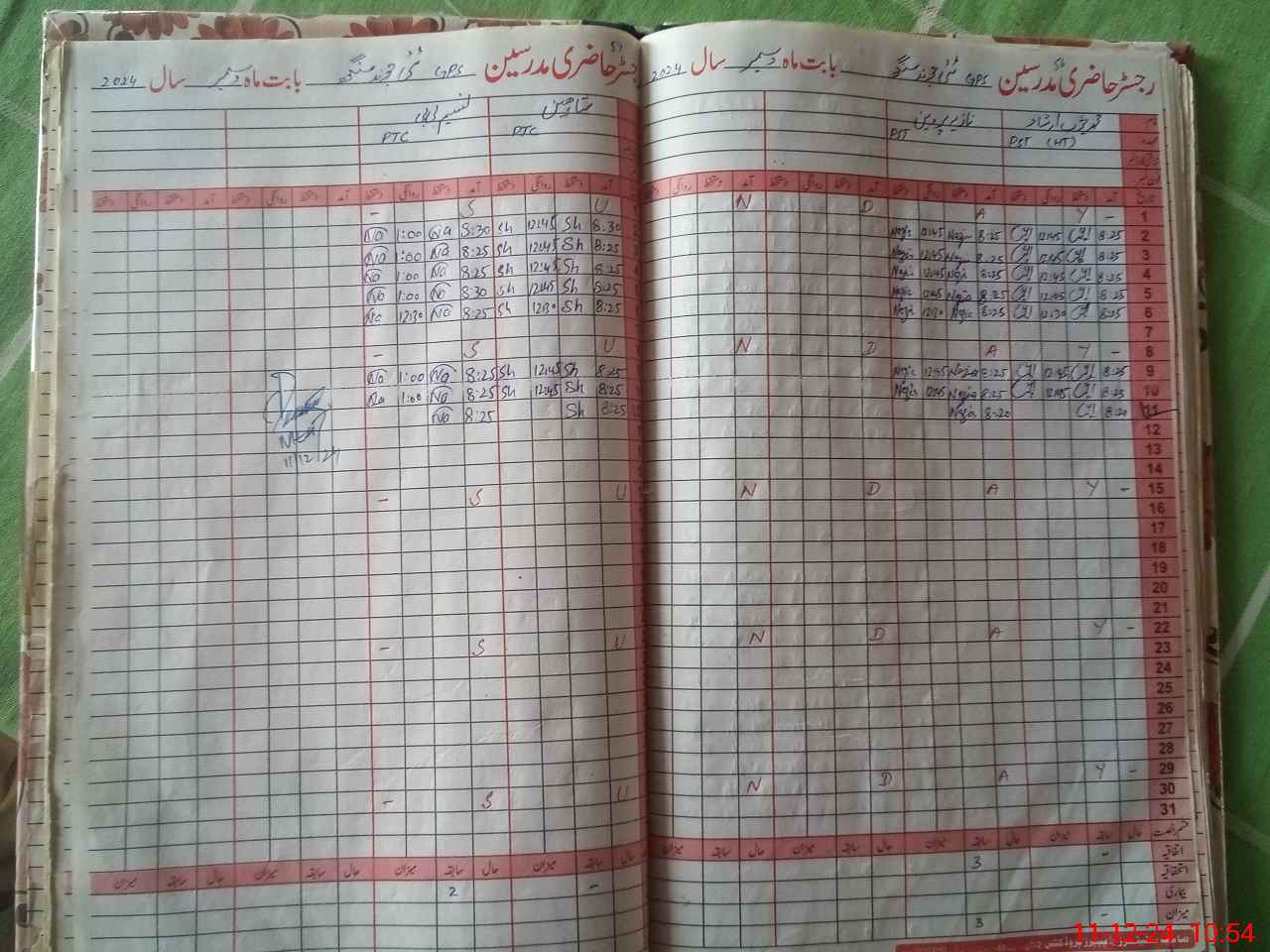 | CNIC | Full Name | Designation | R/C | Absence During Last Calender Month |
