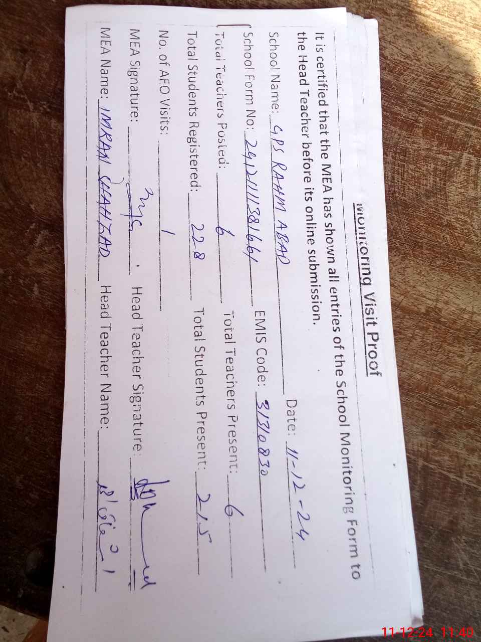 | EMIS Code: 31310830 | Name of School: GPS RAHIM ABAD | |||