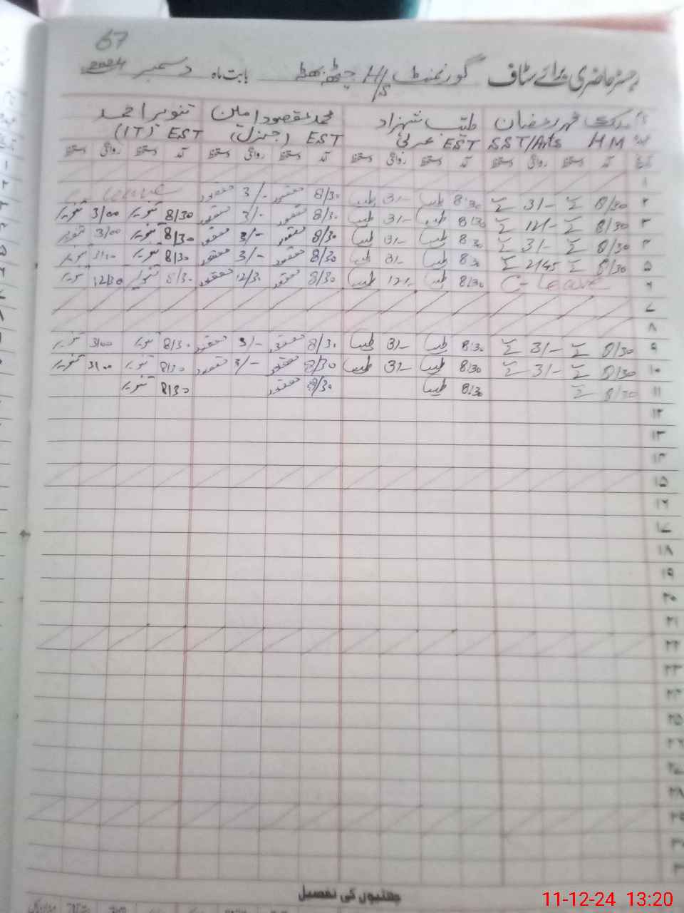 | CNIC | Full Name | Designation | R/C | Absence During Last Calender Month |