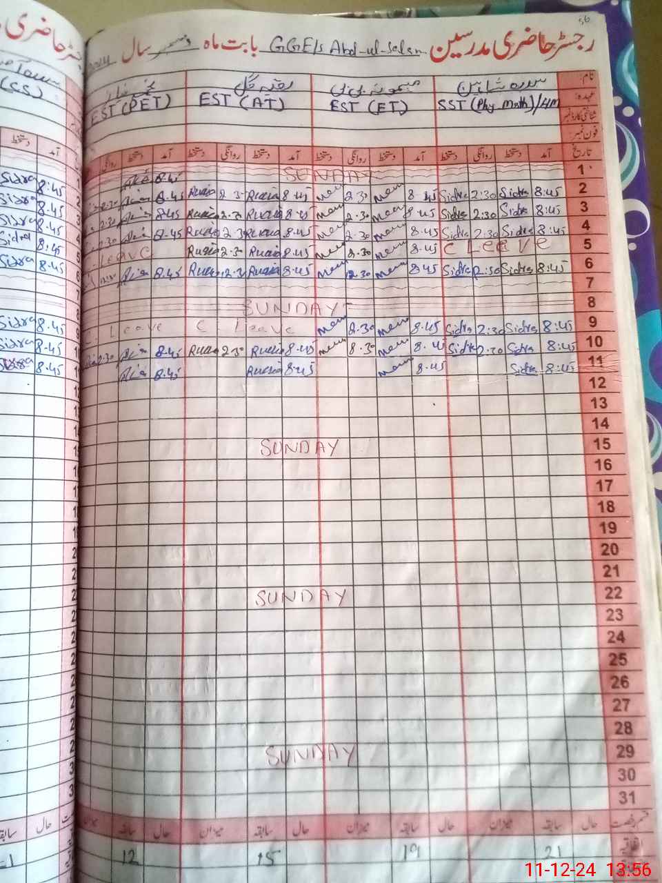 | 31**** | At**** Sa**** | PST | Regular | 2 | 0 | 0 | 0 | 0 | 0 | 0 | 0 | 2 | Casual |