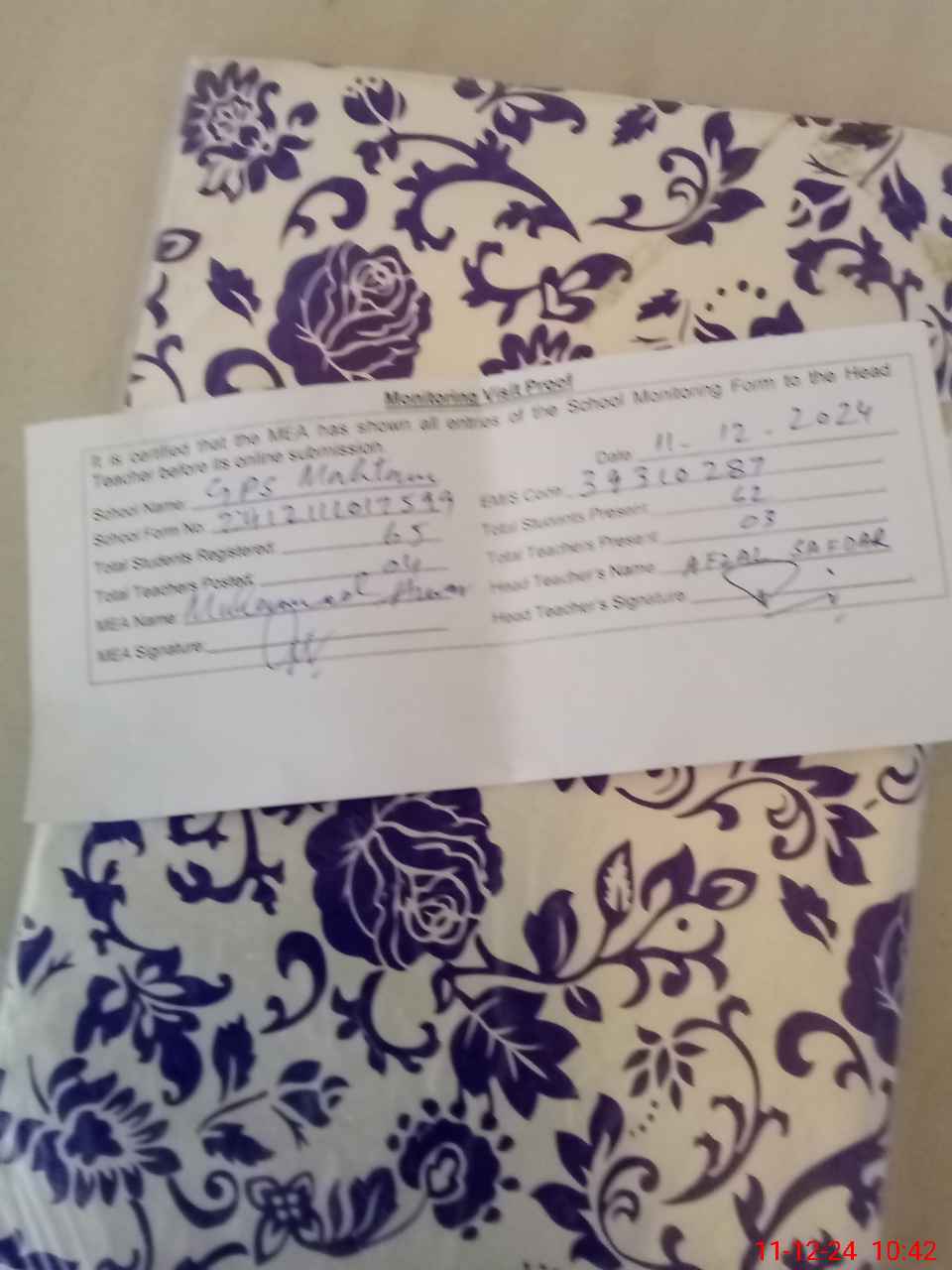 | EMIS Code: 39310287 | Name of School: GPS MAHTAM | |||