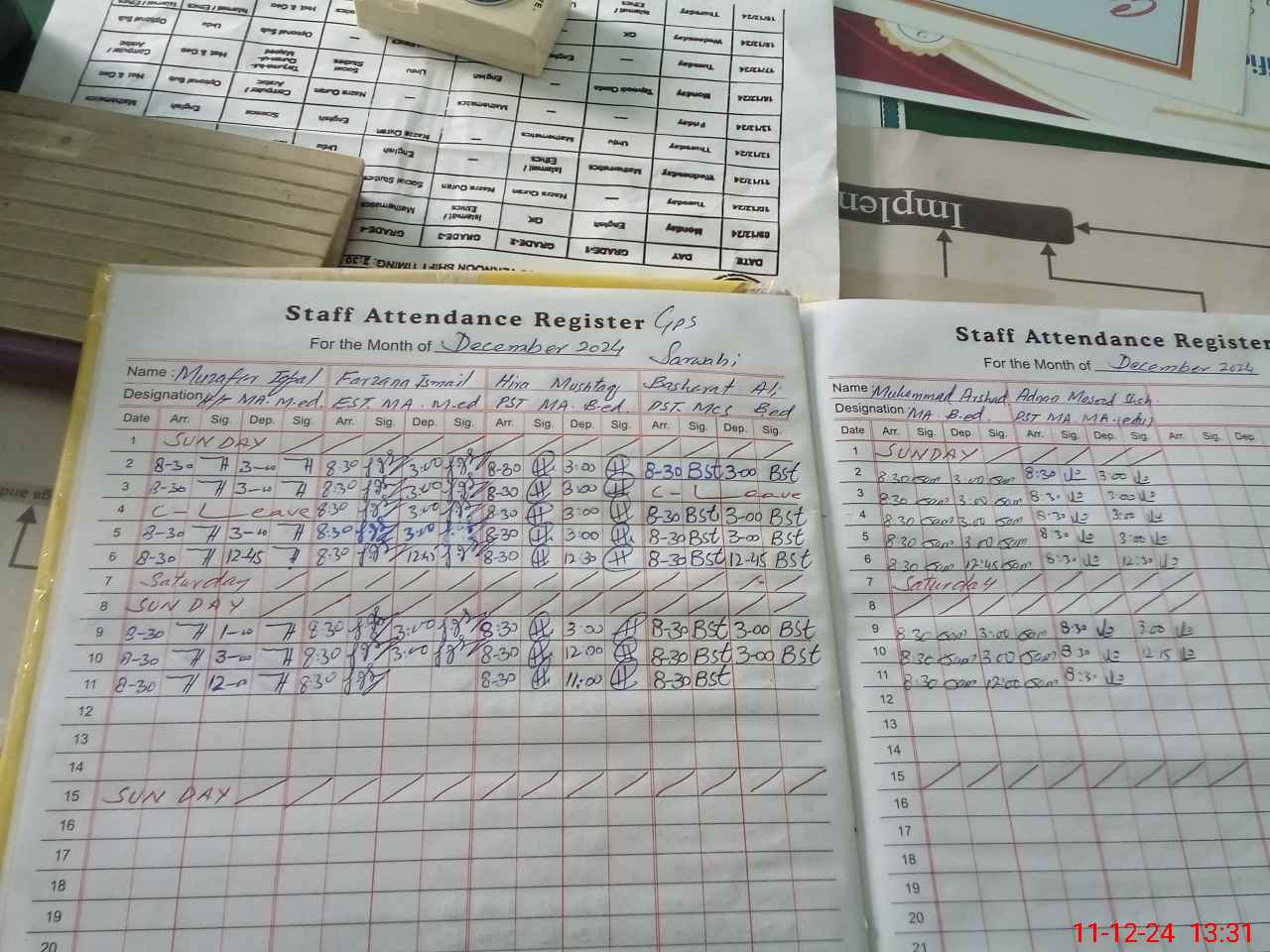 | CNIC | Full Name | Designation | R/C | Absence During Last Calender Month |
