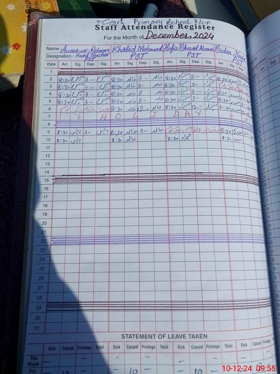 | Leave | Duty | Absent | Maternity | Medical | Ex- Pak |