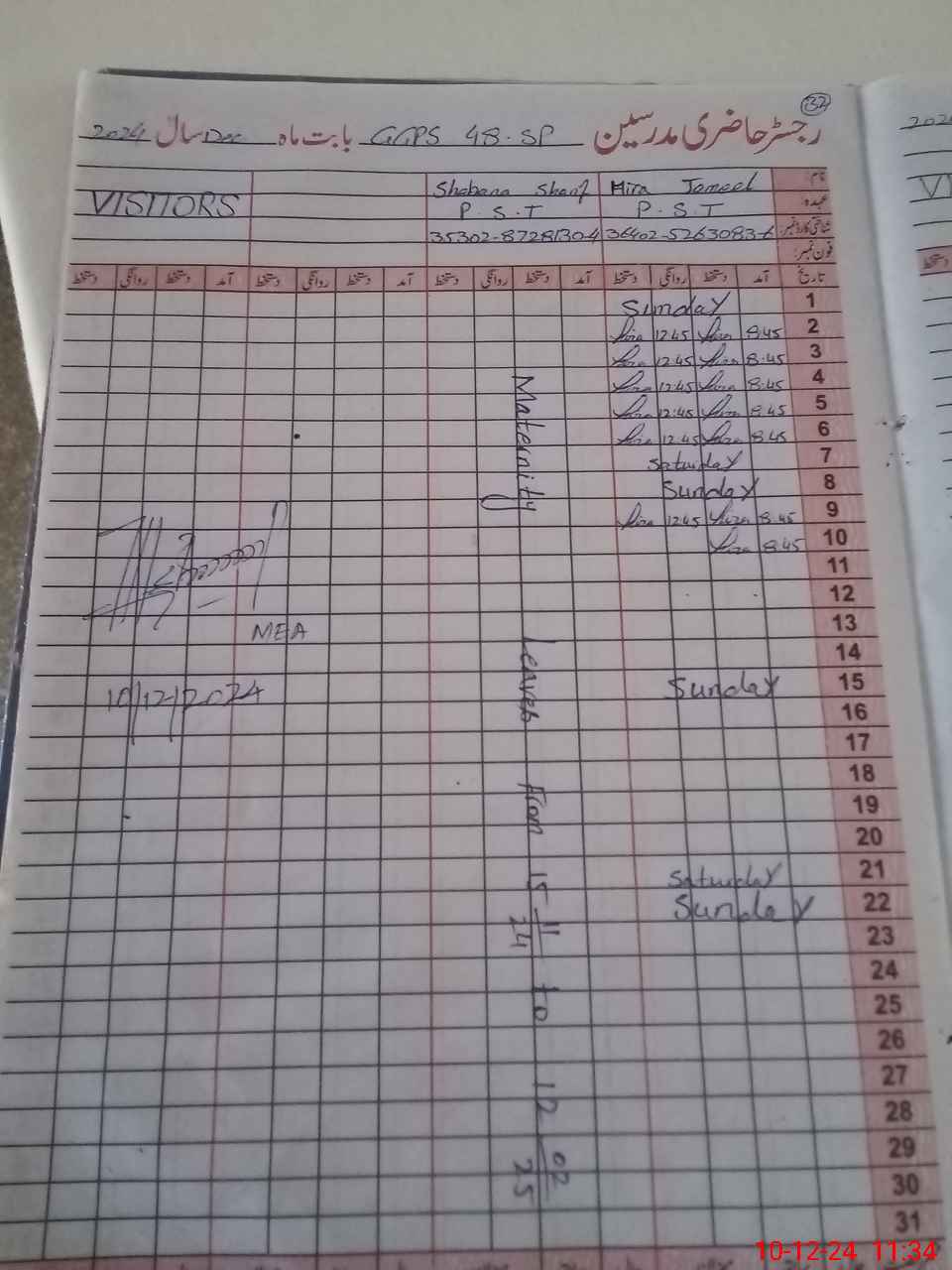 | 35**** | Sh**** Sh**** | PST | Regular | 17 | 0 | 0 | 16 | 0 | 0 | 0 | 0 | 1 | Maternity |